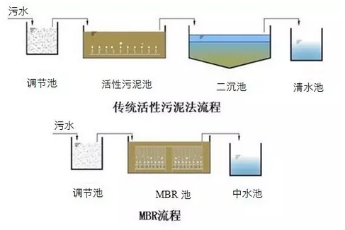 膜生物反應(yīng)器(MBR)用膜對(duì)生化反應(yīng)池內(nèi)的含泥污水進(jìn)行過濾,實(shí)現(xiàn)泥水分離。一方面,膜截留了反應(yīng)池中的微生物,使池中的活性污泥濃度大大增加,達(dá)到很高的水平,使降解污水的生化反應(yīng)進(jìn)行得更迅速更徹底,另一方面,由于膜的高過濾精度,保證了出水清澈透明,得到高質(zhì)量的產(chǎn)水。