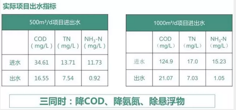 效果:處理生活污水時(shí),系統(tǒng)出水水質(zhì)優(yōu)于《城鎮(zhèn)污水處理廠污染物排放標(biāo)準(zhǔn)》(GB18918-2002)一級(jí)A標(biāo)準(zhǔn),其中CODcr、BOD5、氨氮可達(dá)到地表水Ⅳ類標(biāo)準(zhǔn)。