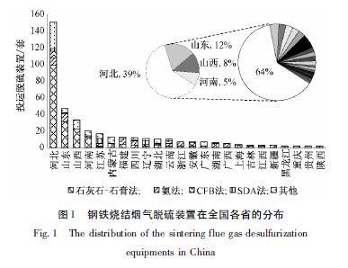 目前,鋼鐵行業的二氧化硫(SO2)年排放量約200萬t,僅次于燃煤電力,居第二位,占全國SO2總排放量的10%。鋼鐵生產過程排放的SO2主要來源于燒結、煉焦和動力生產。燒結工序外排SO2占鋼鐵生產總排放量的60%以上,在長流程生產工藝中占總排放量的85%以上,是鋼鐵行業SO2的主要排放源。燒結煙氣是燒結混合料點火后,在高溫下燒結成型過程中產生的含塵廢氣,與燃煤鍋爐煙氣相比,具有成分復雜,煙氣量波動大(±40%),溫度波動大(120~185℃),含水量大(8%~13%),含氧量高(14%~18%)等特點,這增加了燒結煙氣的治理難度。燒結煙氣脫硫是鋼鐵行業減排SO2的重點。